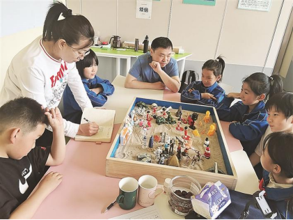 “你看,沙架上现在摆放着各种各样的沙具,来访学生可以充分发挥想象自由创作沙盘作品,在这个过程中,我们不会有任何干预,只是记录他们的行为,完成作品后,让学生讲述他们想表达的故事内容。”王瑞林告诉记者,“通过玩具、沙盘的创作,以游戏的方式呈现出学生内心的人际互动,我们可以借此了解学生内心情感与情绪的真实状态,同时使之在游戏过程中产生疗愈的效果。”