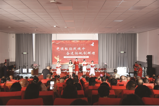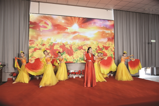 活动在歌伴舞《党旗飘飘》中拉开帷幕。红色情景剧《太行乳娘》催人泪下,演绎精湛,以情景表演的形式,再现了发生在太行山深处的革命故事;朗诵《我们的职业无上荣光》用声音传递真情,体现了融媒工作者的风采风貌,讴歌了交城融媒人有理想、有激情的豪迈情怀;歌曲《领航》气势恢宏、激荡昂扬,以高昂的旋律唱响了新时代奋进的力量;手风琴独奏《打虎上山》、诗词朗诵《书写青春华章》、男声四重唱《把一切献给党》、集体诵读《教育家精神》和《为人民服务》等多个经典节目轮番上阵,不断将现场推向高潮。演出者们或翩翩起舞,或满腔热忱,以一首首经典的红歌、一段段恢宏的旋律共同为党的生日献上最美好的祝福。