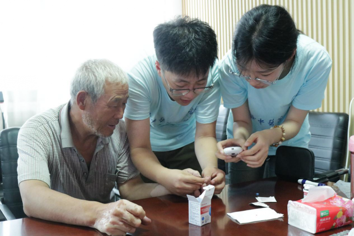 基层医疗是农村居民健康的第一道防线,关乎着乡村振兴战略的实施和全面建设社会主义现代化国家的进程。对此,队员们积极开展“急救知识”的科普宣讲活动,满怀热忱地为当地村民进行血压、血糖等健康评估服务。
