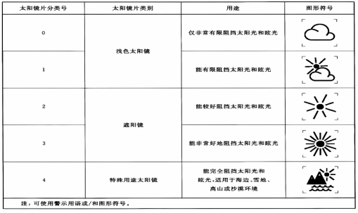 图三:不同太阳镜的适用范围(图片来源:GB 39552.1-2020 太阳镜和太阳镜片 第1部分:通用要求)