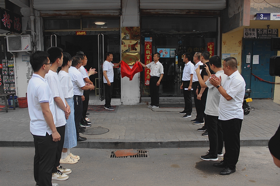 图:区民政局副局长崔金强、青年志愿者协会党支部书记赵日升揭牌