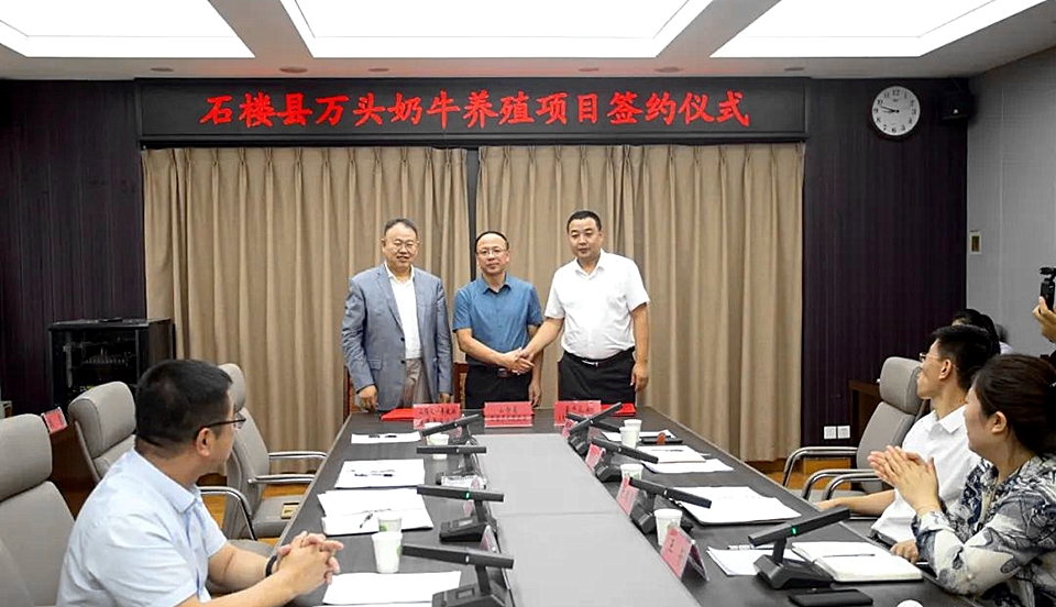 7月14日,石楼县与蒙牛集团山西奶源部、天津又一丰集团签约万头奶牛养殖项目。这是石楼县引进的一个重大现代农业项目,将为石楼县加快实现“168”农业产业计划具有深远的意义。三方联手将在石楼县打造具有世界先进水平的万头奶牛养殖基地,项目建成后,通过整合上下游产业链资源,将进一步拓宽当地就业渠道、助力本地居民增收致富,推动石楼县经济高质量发展。