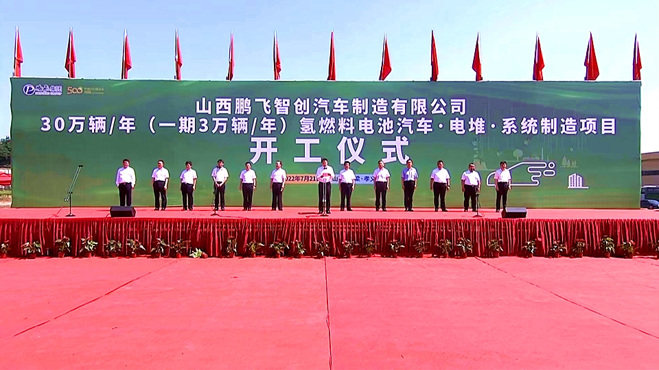 “我宣布,山西鹏飞智创汽车有限公司氢燃料电池汽车·电堆·系统制造项目开工!”7月21日上午,伴随着省工信厅厅长武宏文铿锵有力的话语,鹏飞集团30万辆/年(一期3万辆/年)氢燃料电池汽车·电堆·系统制造项目正式开工。市长张广勇出席开工仪式并讲话,市人大常委会副主任、孝义市委书记刘世庆主持。