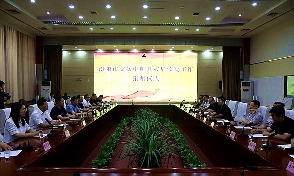 8月14日,汾阳市支援中阳县灾后恢复工作捐赠仪式在县委一楼东会议室举行。汾阳市政府市长贾永祥、汾阳市政协主席王云照和中阳县政府县长孙燕飞、县政协主席武爱国、政府副县长翟贺平、县政协副主席郭晓明出席捐赠仪式。