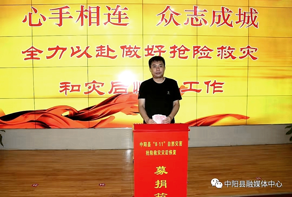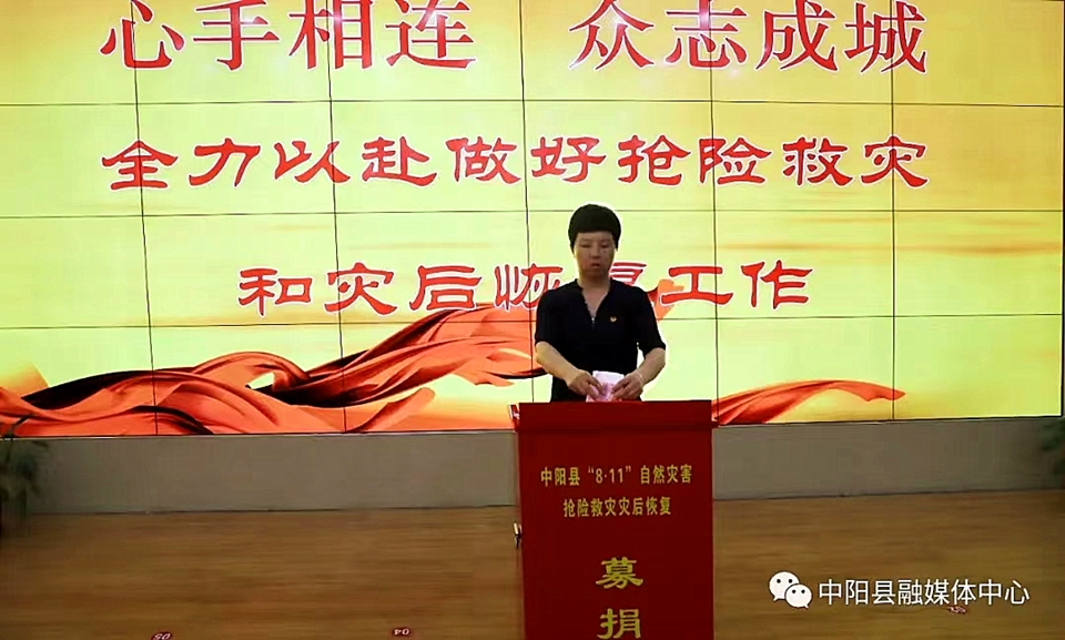 抢险救灾刻不容缓,灾后恢复时不我待。8月15日上午,中阳县委县政府在一楼东会议室举行“8.11自然灾害抢险救灾和灾后恢复募捐”活动。市委常委、县委书记赵沂旸,政府县长孙燕飞等领导带头捐款,用实际行动体现责任与担当,为受灾群众献上一份爱心。