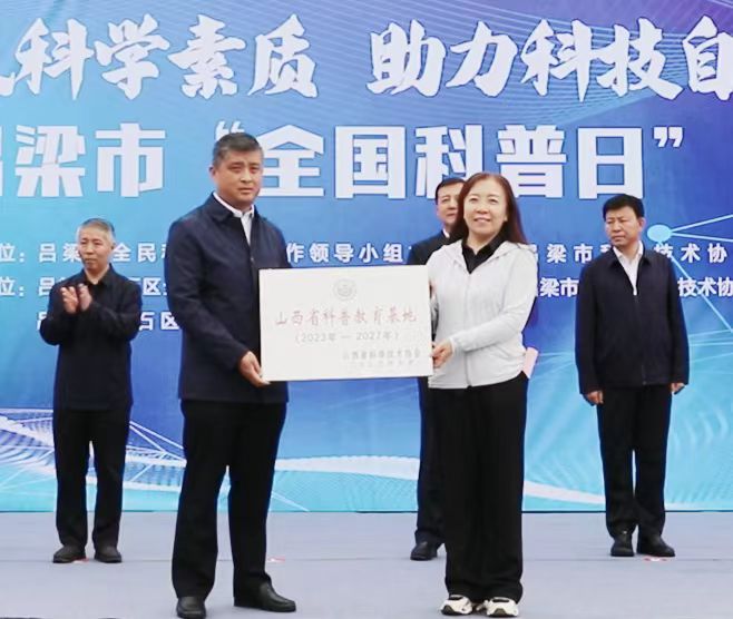 山西省科协党组成员、副主席谭丽红为离石区王营庄科创小镇颁发了“省级科普教育基地”牌匾。谭丽红发表了激情洋溢的讲话,今天我们科技工作者齐聚一堂,举行以“提升全民科学素质,助力科技自立自强”为主题的主场活动启动仪式,这是吕梁市科技界的一次盛会,向工作在科普一线的广大科技工作者、科普工作者和科技志愿者表示诚挚的问候和衷心的感谢!近年来,吕梁市科协紧紧围绕市委中心重点工作和“985”重点产业链建设,连续22年推进科普月主题活动,为科普做出了重要贡献。科普作为建设世界科技强国的有力支撑、实现人的全面发展的必然要求、满足人民群众对美好生活向往需求的重要途径,成为科技创新发展的重要节点。希望各级党委和政府在壮大科普人才队伍上给予持续关注,全市各级科协组织在发挥桥梁纽带作用上持续发力,广大科技工作者在提高全民科学素质上继续加油。让我们团结起来,勇于创新、求真务实,凝聚高质量发展的强大合力,为提升全民科学素质,助力科技自立自强作出更大贡献!谭丽红宣布了2023年全国科普日暨第二十二届吕梁市科普月活动启动,现场进行了人工智能机器人、无人飞机航空表演。