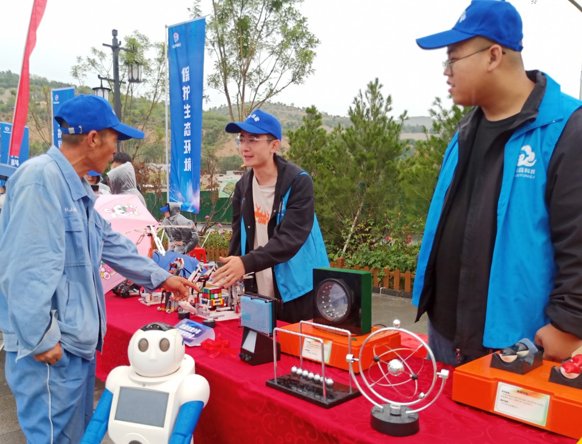随后与会人员参观了科创小镇,观摩了科普优种下的农副特产高粱、谷子、黑豆、葵花、大麻籽等,各成员单位、受邀组织现场在展位区域开展路演和科普宣传,山西农大经作所推广了新品种和农作物标本科普展示讲解,系列展演中有机器人学会的科普教具演示教学、吕梁学院科普航模教学、受邀机器人航模团队设备展示、红十字急救知识科普演示教学等,吕梁市人民医院、中医院、离石区人民医院等医疗单位现场进行了义诊,山西省科技传媒集团带来了精彩纷呈的科普演示,现场互动热烈。