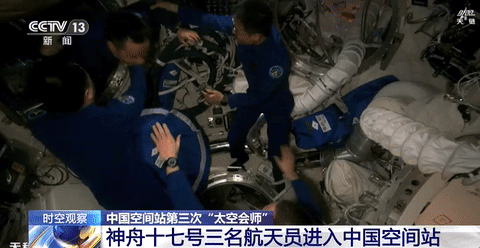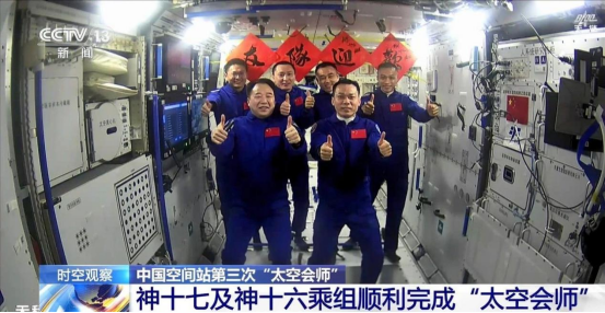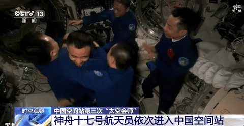 北京时间2023年10月26日19时34分,神舟十六号航天员乘组顺利打开“家门”,欢迎远道而来的神舟十七号航天员乘组入驻“天宫”。