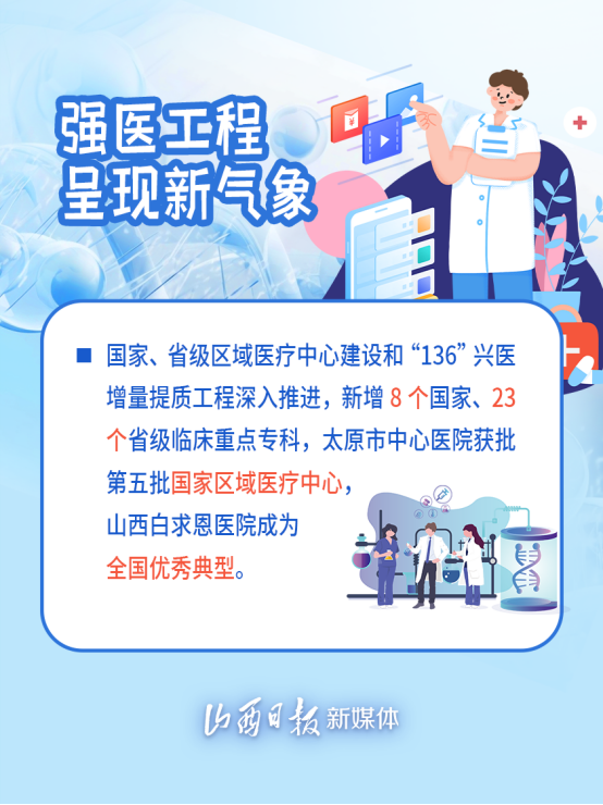 今年以来,山西以“建高地、兜网底、提能力”强医工程为主线,大力推进卫生健康事业高质量发展,推动深化医药卫生体制改革工作取得明显成效。