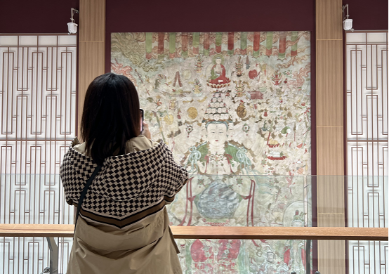 逛壁画源流展的过程,如同在看一本壁画立体书,馆内不仅按照时间线对国内各地的最有代表性的壁画做了梳理和总结,还有些已经被损毁佚失的彩塑被技术人员仿制后展示,让参观者大开眼界。在聆听讲解的过程中,记者了解到,馆内建设有1500平方米的文物修复中心,聚集有一支经验丰富的文保队伍,青灯古技对话三晋大地上的历史遗存,将文物保护工作落地生根为专业的文化行动。