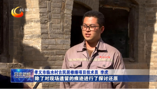 【同期】孝义市临水村古民居修缮项目技术员 李虎:我们按照修旧如旧的原则,除了对现场遗留的痕迹进行了探讨还原,还询问了当地老百姓,结合他们的印象,尽最大可能恢复原建筑形制,确保原建筑风格,保护当地历史文化。