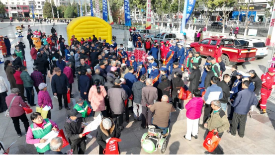 为深入学习宣传贯彻党的二十大精神,深刻领会习近平总书记关于安全生产、防灾减灾救灾等应急管理工作重要论述,把消防宣传月活动作为防范化解重大安全风险,服务经济社会高质量发展的重要抓手。11月8日上午9时,吕梁市119消防宣传月活动启动仪式在离石区世纪广场举行。吕梁市政府副秘书长、市安委办主任、市应急管理局局长杜侯平出席活动。吕梁市消防救援支队支队长沈广庭、政治委员张军,离石区委副书记、区长张海文,离石区人民政府副区长陈利平,市、区两级安全生产委员会有关成员单位负责人,消防救援队伍指战员代表,离石区部分乡镇街道负责人、消防安全重点单位负责人,消防志愿者等500余人参加启动仪式,启动仪式由张军政委主持。