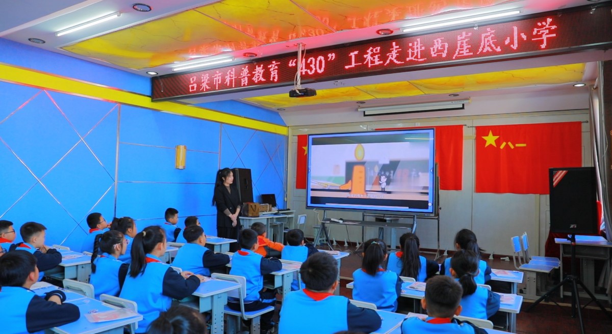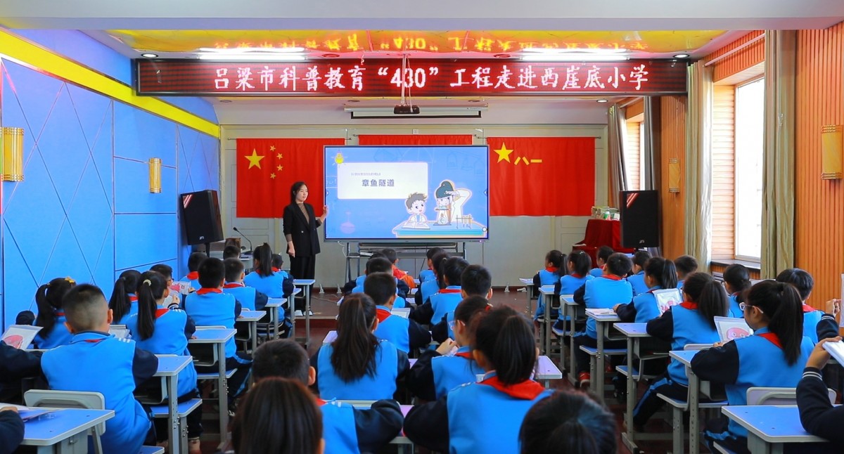 11月20日下午4点30分,吕梁市科普教育“430”工程走进离石区西崖底小学,课堂内容为科学探索实验之“章鱼隧道”,西崖底小学四年级4班师生和在校科学老师一起聆听了讲课,副校长闫林美参与听课。