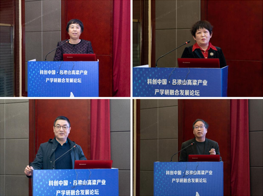 主旨报告环节,特邀国家谷子高粱产业技术体系岗位科学家、辽宁省农业科学院高粱研究所二级研究员邹剑秋,山西农业大学高粱研究所二级研究员平俊爱,山西杏花村汾酒原粮基地、管理有限责任公司董事长赵胜,国家谷子高粱产业技术体系高粱产品加工岗位科学家、山西农业大学社会服务部副部长、二级研究员柳青山四位作分享。他们围绕国际国内高粱生产与贸易及前景展望、清香型白酒酿造高粱品质的需求与解决方案、汾酒原粮基地建设的探索与思考、发展高粱产业助推乡村振兴等主题同与会人员进行交流探讨,为进一步推动高粱产业创新发展、酿品产业集群提质升级献计献策。
