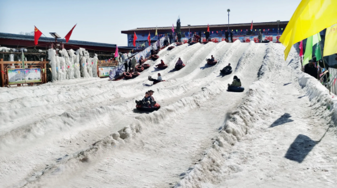 在村口设置显赫的双龙腾飞盛世华章景观,大街小巷搭彩门拉灯串挂灯笼,摆特色小吃、玩具绢花摊,村委游乐园里有绚丽多彩的锣鼓秧歌表演、花灯长廊、书画剪纸展、民俗文化墙、滑雪场、大型冰挂、九曲阵、碰碰车、吴桥马戏表演等活动,吸引十里八乡村民群众及周边县市游客络绎不绝前来游览,图个热闹好玩,感受民俗文化魅力,体会乡村浓浓的年味。
