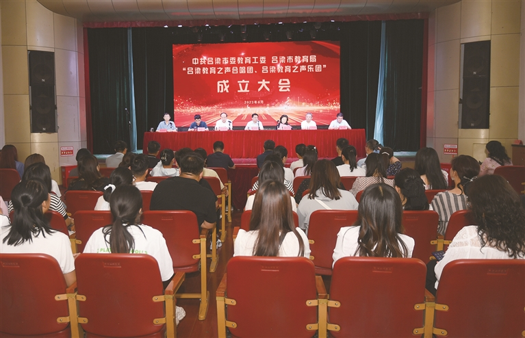 2023年6月,“吕梁教育之声合唱团”“吕梁教育之声乐团”成立大会在吕梁市艺术学校隆重举行。市委教育工委书记、市教育局局长赵雪宏出席并讲话。吕梁教育之声合唱团、吕梁教育之声乐团的成立,为吕梁美育教育创建了一个新的载体,为打造吕梁特色教育高地筑牢了根基,进一步拓展了音乐教育形式,丰富了教学内容,成为全市音乐教师交流教学心得、提升音乐素养的重要平台和展现吕梁教师风采、展示吕梁教育形象的一张靓丽名片。