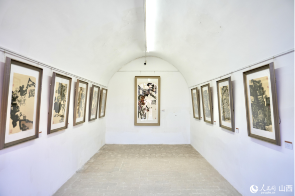 谢永增孙家沟艺术馆内展出的一幅幅画作。人民网 卢鹏宇摄