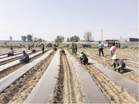 图为村民们在移栽红薯苗,种下致富新“薯”光。 冯增清 庞小玉 摄