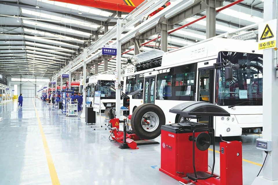 吕梁经开区,山西美锦氢燃料商用车生产线。本报通讯员摄