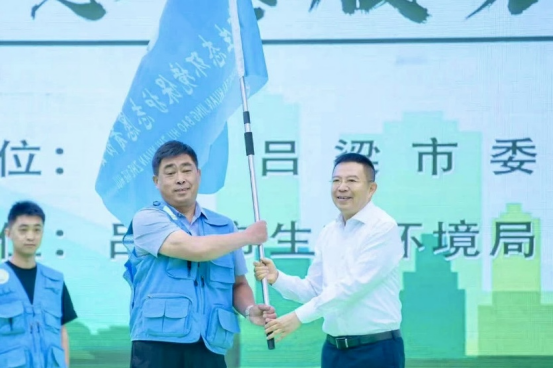 吕梁市委副书记、市长张广勇为生态环保志愿服务队授旗,市委书记孙大军宣布吕梁市2024年六五环境日“全面推进美丽中国建设”生态环保志愿服务系列活动启动,随后与会领导一起参观了活动现场的宣传点。